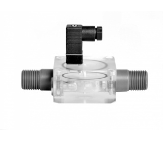 Princip: Z turbínky průtokoměru je signál vyslán do Hallova senzoru který je externě osazen na průtokoměru bez kontaktu s kapalinou. Následně je signál převeden na průtok pomocí PLC.